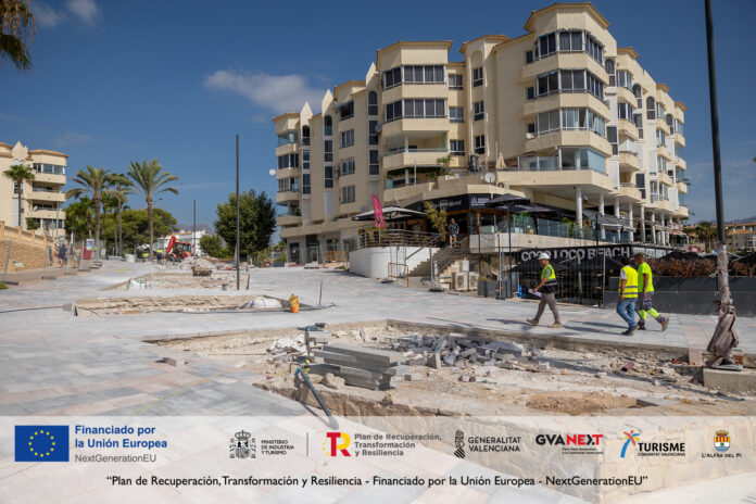 Oppgraderingen av strandpromenaden i Albir gjør plassen mer vennlig for fotgjengere og fjerner i stor grad bilene fra området. Prosjektet er 100 % finansiert av midner fra EU.