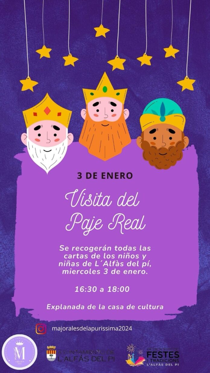 Ankomsten til Deres Majesteter de tre vise menn er planlagt til fredag 5. januar. Melchior, Gaspar og Balthazar deltar kl. 18.30 i en kongelig mottakelse som finner sted på plassen ved Casa de Cultura. Her blir det underholdning for barn, gaver til alle fremmøtte, sjokolade og cupcakes og en levende julekrybbe. Aktivitetene arrangeres i samarbeid med Majorals del Santíssim Crist del Bon Encert 2024 og departementet for festivaler og tradisjoner i L’Alfàs.
