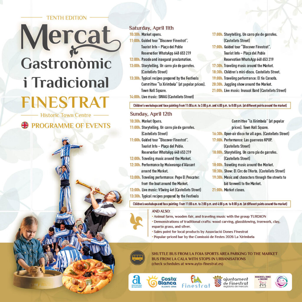 Mercat (markedet), som arrangeres av Finestrat rådhus i samarbeid med lokale foreninger, gjenspeiler byens sosiale vevs engasjement. Ti år senere fortsetter arrangementet ikke bare, men styrker også byens identitet og evne til å tiltrekke seg et stadig bredere publikum.