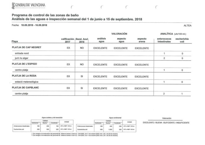 Byråden ber Partido Popular, som er i opposisjon, ta en titt på analysene man har gjort av vannet som viser «excelente». Man har tatt målinger av vannet hver uke fra 1. juni til og med 15. september, perioden med størst besøk på strendene i Altea. Byråden sier analysen viser hvordan «Partido Popular» lyver.