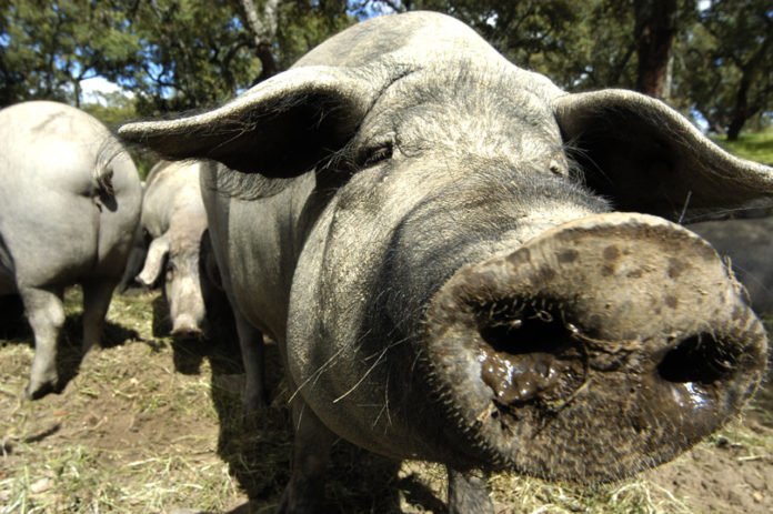 “Sierra de Aracena y Los Picos de Aroche” strekker seg mellom Sevilla og grensen med Portugal. Landskapet er frodig og vakkert og egner seg godt for turer og picnicer. Men ingen picnic er komplett her uten noen saftige strimler med “jamòn”. Og heller ingen lunsj ute i det fri uten at en gjeng gråsvarte griser kommer snøftende bortom for å hilse på. Hele nitti prosent av denne naturparken består av kastanjer og korktrær som sørger for et naturlig kosthold for grisene i form av nøtter. Dette er grisene som skal bli til Spanias aller beste skinker!
