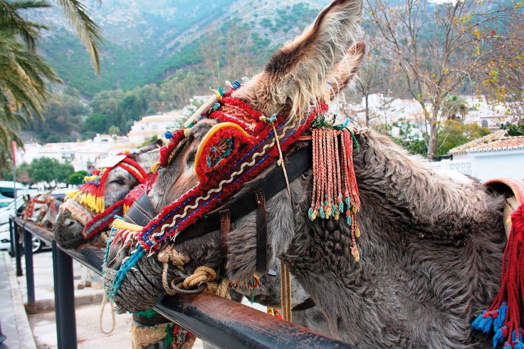 Det første som skiller seg ut når du kommer til Mijas er taxiholdeplassen hvor det står opptil 61 esler med vogn eller sal. Oppstaset og stolt vendes mulen forventningsfullt mot nysgjerrige turister. De er klare til dagens arbeidsøkt.