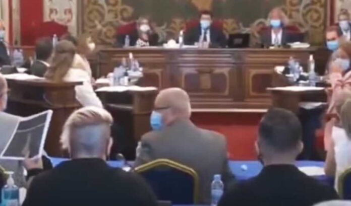 – Vi synes det er kaldt her, dette kalles også mikro-sjåvinisme, avbrøt byråden fra Podemos mens hun spurte salen om de viste hva det var hun holdt i hånden. Papirene hun holdt var Alicante-kommunes plan for likestilling påpekte hun.