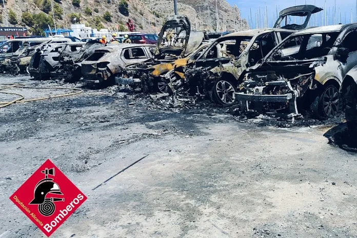 En brann brøt lørdag ut i en bil på parkeringsplassen ved marinaen i Jávea (Alicante) og spredte seg til andre, og rammet rundt tretti kjøretøy, hvorav 17 ble fullstendig ødelagt, ifølge kommunale kilder.