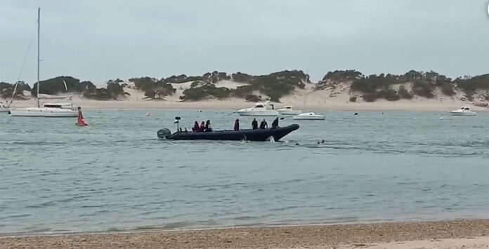 Hendelsen skjedde rundt kl. 12.30 onsdag og ble filmet av et vitne på land. Etter å ha satt av totalt 27 migranter forlot tremotorbåten kysten i høy fart. Båten ble senere sett sette av ytterligere åtte migranter på stranden i Sancti Petri, ifølge vitnesbyrdet under knivstikking. Det melder avisen El Mundo.