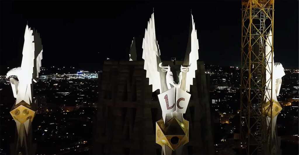 Installasjonen av den 17 meter høye og 13,5 meter brede korsstrukturen laget av keramikk og glass ble sendt direkte på sosiale medier og overværet av tusenvis av tilskuere. Korset er designet for å reflektere dagslys og lyse opp nattehimmelen, i tråd med Gaudís visjon om å skape et symbolsk lys for byen. Torre de Jesús, den sentrale av de 18 tårnene, fullfører kirkens vertikale profil, som Gaudí bevisst designet for å være litt lavere enn Montjuïc-fjellet som et tegn på respekt for naturen.