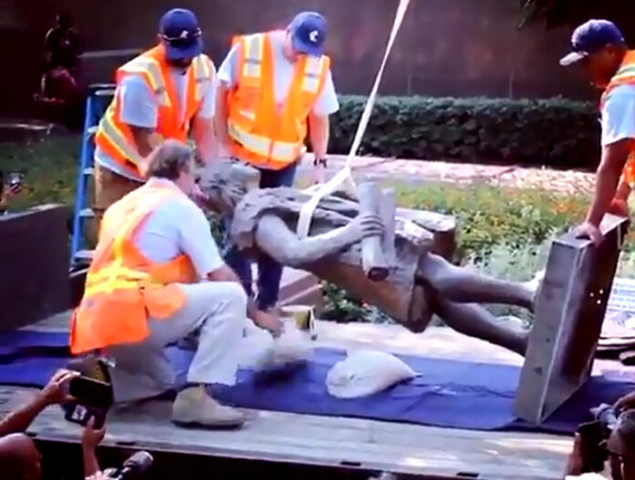 Statuen som nå er fjernet i Grand Park i sentrum av Los Angeles ble oppført i 1973. Den omstridte figuren skal ha vært en gave til byen fra en sammenslutning i av italienske innbyggere i staten California.