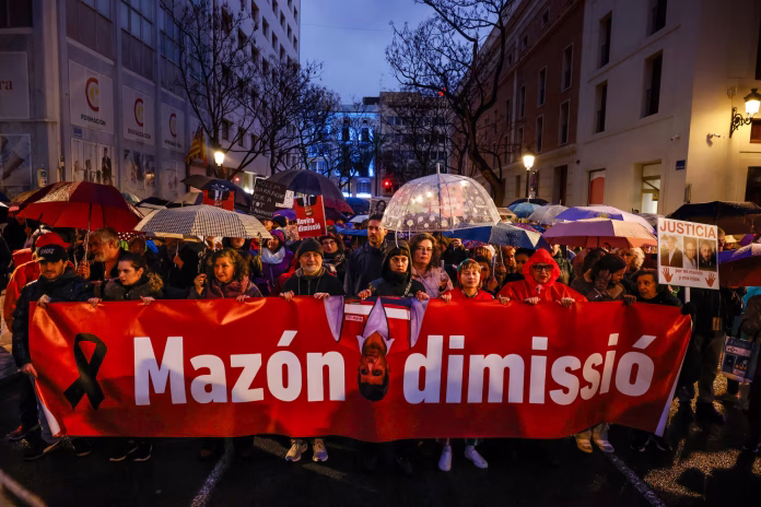 Mazón, som tilhører det konservative Partido Popular, blir også kritisert for det folk oppfatter som en treg og kaotisk respons på naturkatastrofen. Tusenvis av frivillige var de første på bakken i mange av de hardest rammede områdene i Valencias sørlige utkant. Det tok flere dager før myndighetene mobiliserte de tusenvis av politiforsterkningene og soldatene som den regionale regjeringen hadde bedt sentrale myndigheter om å sende inn.