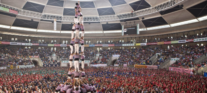 Over 40 «colles» (lag) samlet seg på den historiske Tarraco Arena Plaça, en tidligere tyrefektingsarena, for å delta i arrangementet, som nå er i sin 29. utgave siden debuten i 1932.