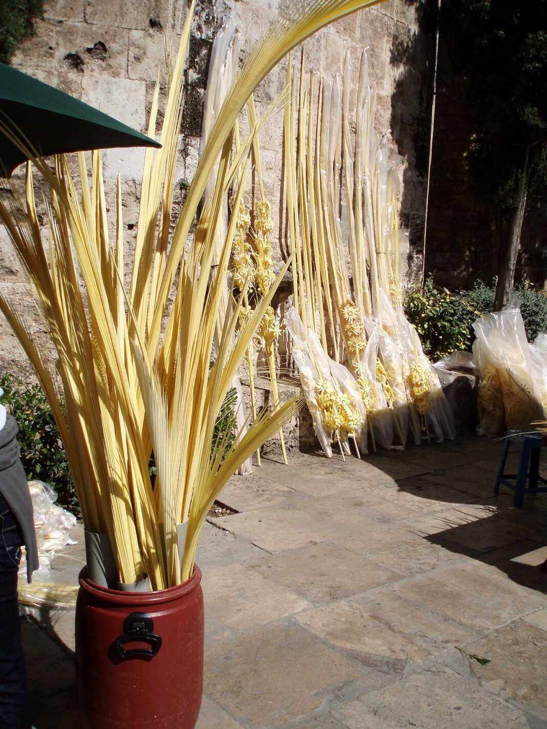 I dagene frem mot påske starter salget av de hvite palmegrenene i Spania. Grenene brukes til å flette figurer som bæres til kirken eller brukes som dekorasjon i prosesjonene på Palmesøndag. Figurene har for mange en sterk religiøs betydning som symbol på fortellingen om når Jesus kommer til Jerusalem og lidelsesberetningen. Det stedet i verden som regnes for å ha den lengste tradisjonen for å «dyrke» og tilberede de hvite påskepalmene er byen Elche i Alicante.