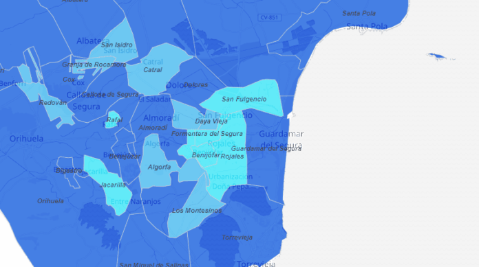 For Rojales er tallet stabilt på seks smittede og i Orihuela har man nå 129 smittede siste 14 dager mot 93 personer 30. september.