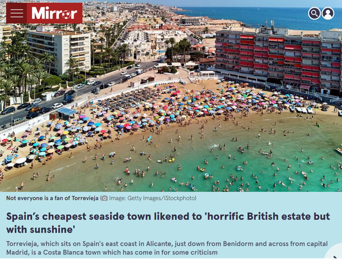 Storavisen The Mirror skrev «Etter et besøk i Torrevieja, setter man bedre pris på alle de andre stedene i Spania«. Dette er bare en av de ødeleggende kommentarene om turist-byen Torrevieja som dukket opp i britisk presse. Storavisen DailyStar skriver «.. billig øl.. forferdelig by…«. Den tredje avisen The Express omtaler Torrevieja som «Blackpool med sol«, en referanse til britenes kanskje mest forhatte ferieby.