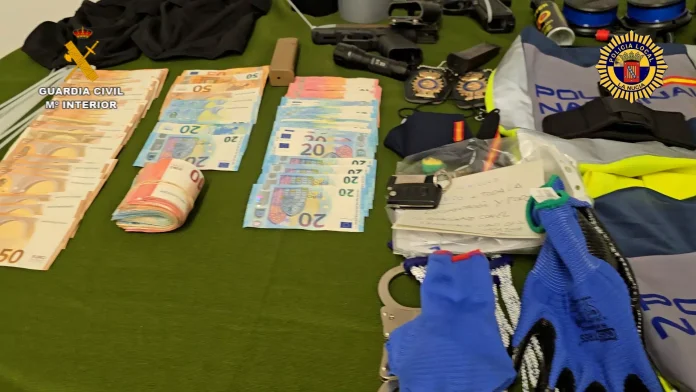 I en felles inspeksjon identifiserte agentene de mistenkte og verifiserte opprinnelsen til kjøretøyene og det beslaglagte materialet. Under intervensjonen fikk de informasjon om et voldelig ran som nettopp hadde funnet sted i Guardamar del Segura, der flere personer med hetter, som utga seg for å være politibetjenter og bar skytevåpen, finlandshetter, politimerker og fotlenker, hadde stjålet en bil og andre verdisaker.