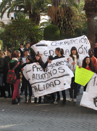 Hundrevis av ungdommer samlet seg på Plaza de la Constituciòn i Torrevieja for å demonstrere mot regionalregjeringens innstramminger i skoleverket.